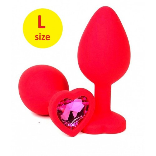 Анальна пробка L 4 см силіконова серце з каменем TOYFA Silicon Plug L + мішечок